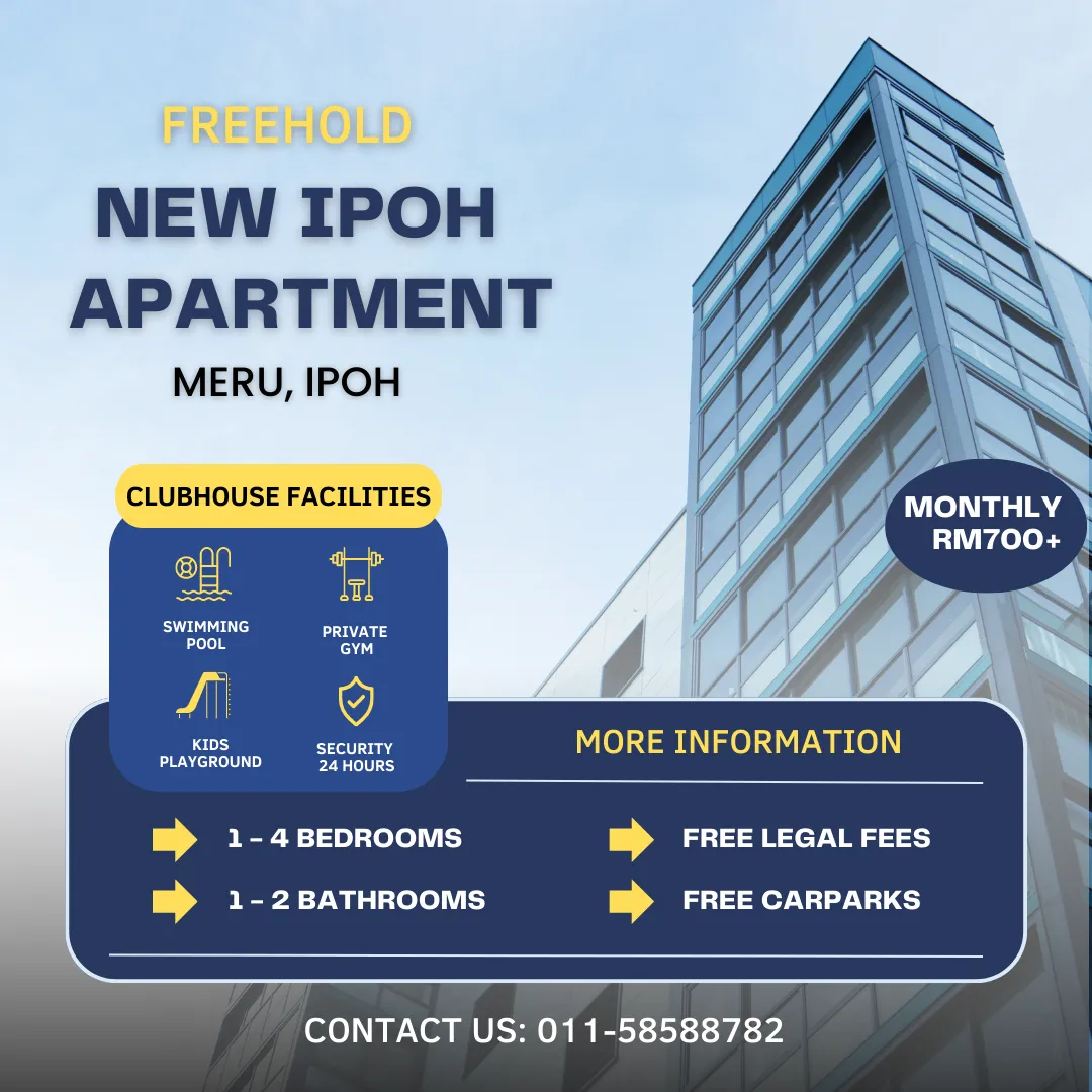 #NEW FREEHOLD# Ipoh Apartment at Meru🏨, 5 mins drive to Ipoh Aman Jaya Bus station & Mydin Meru😍Don't miss it!